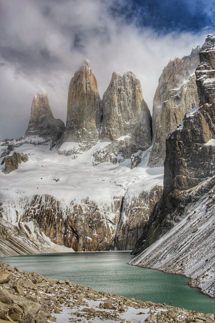 After toying with death (ok, that might be an overexagerration) we reached the Torres just as the clouds started to part. With the sun glinting off the rockface, they looked majestic. This was what four days of hiking had built up to – it was a proper achievement and so worth the cold nights and long hikes.