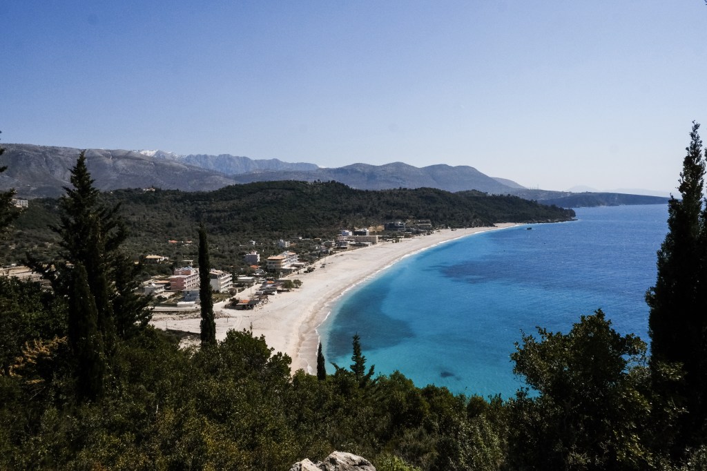 This is an archetypal Albanian beach – a long stretch of white sand, backed up by restaurants, campsites, hotels and more. But these aren’t the typical high-rise apartment blocks you’d see in Spain, but small scale, typically locally owned affairs. We used this place as our base for exploring the Riviera for two days, and stayed at Camping Muskato.