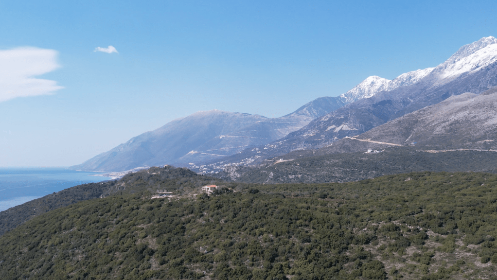 The beginning of this drive is spectacular. Starting from Vlore, you begin to drive up into the mountains towards Mt Djati. We visited in March, and, while the weather was beautiful blue skies and warm sun, there was still snow by the side of the road.