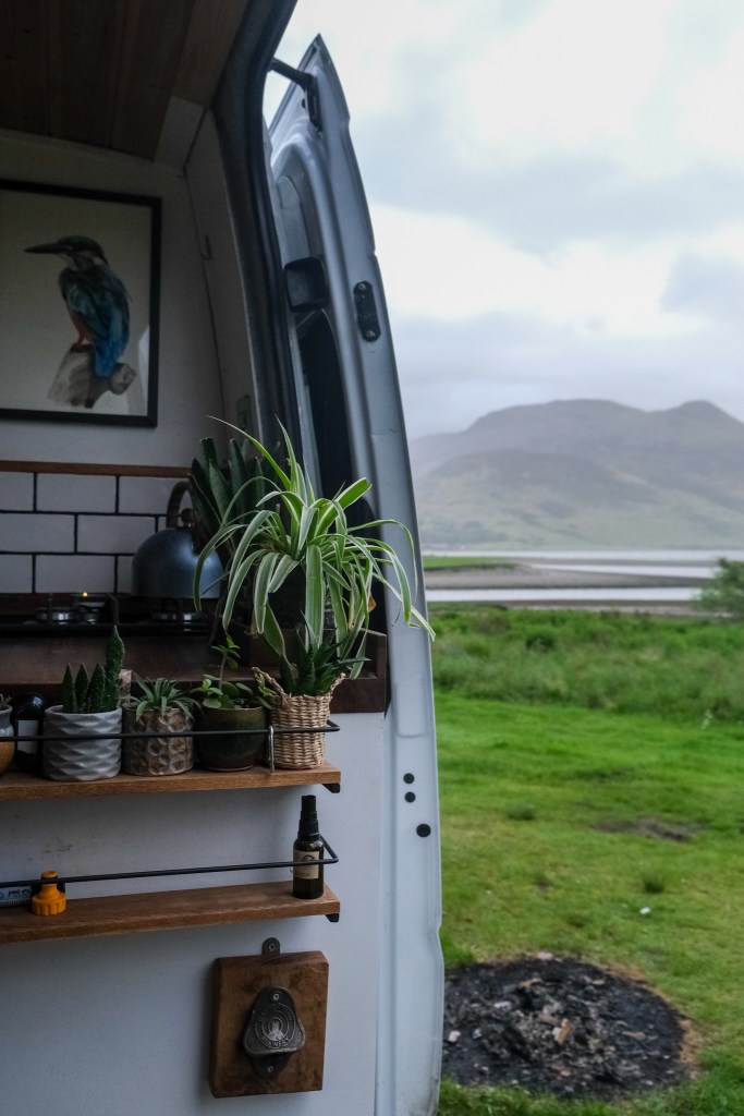 Mull is a popular island to visit, and as a result, wild or free camping can be difficult, and not that tolerated with locals. While there are a few spots – like Calgary Bay – where you can park for the price of a donation, there are also a number of wide and grassy farmers fields that you can camp on for a small fee. For our second night on Mull we stayed on Killechronan Campsite, with lochside views for just five pounds per person (pictured below). And, with the sun coming out, we made the most of the island’s white sand beaches by staying on Fidden Farm campsite